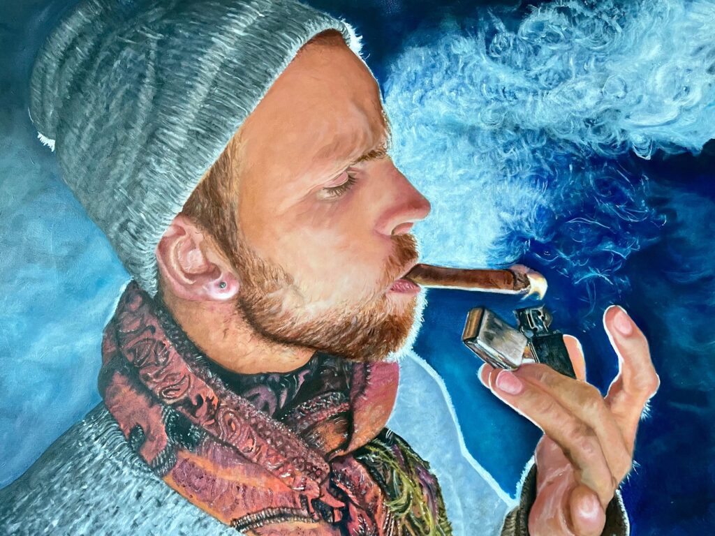 Na eerst mijn dochter te hebben geschilderd, had ik nu het verlangen om mijn zoon in zijn veertigste levensjaar te schilderen. Dit project heeft 8 maanden gekost.