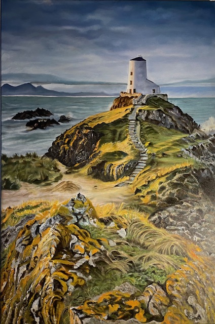 Ik moet toegeven dat ik altijd dol op de zee ben en al veel schilderijen van de zee heb gemaakt. Dit was mijn derde olieverfschilderij. De rotsen en het geel waren een hele uitdaging. Ik heb er zeven maanden over gedaan, maar het resultaat mag er zijn.